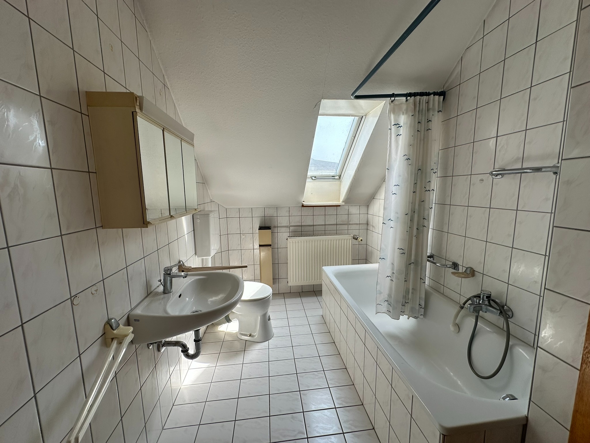 - Ausstattung des Bades Fenster, Badewanne