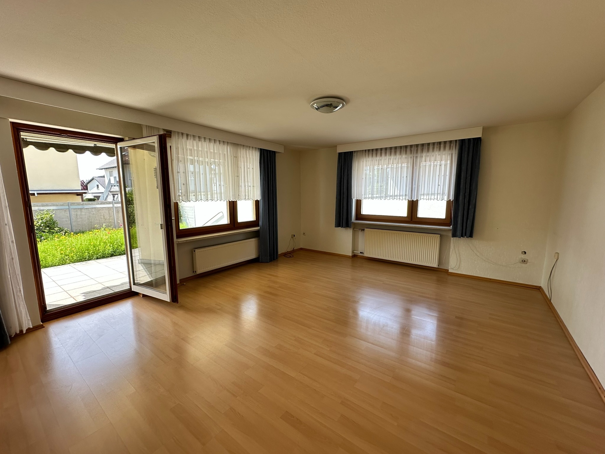 * Großes Wohnzimmer mit Terrasse und Gartenzugang
